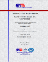 Regal Cutting Tools has, with the assistance of American Management Technology Inc, updated our compliance to the new ISO 2015 standards. Our review of current procedures and the subsequent revisions ensurea that our products and services not only meet the requirements of our customers, but in most cases, exceed their expectations. Learn more about our certifications and memberships.x