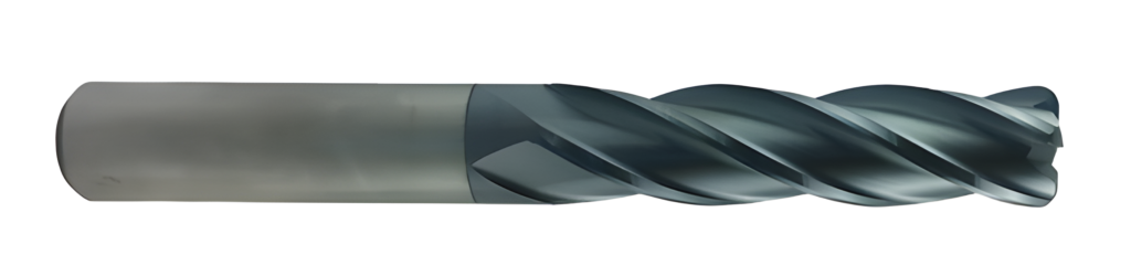 Four flute Triple Crown carbide end mills with AlTiN coating are capable of producing high production rates due to a sturdy core and well designed cutting action. AlTiN coating insures smooth workpiece finish while the hard coating withstands heat and abrasion. The selected corner radius eliminates chipping of the sharp corner.